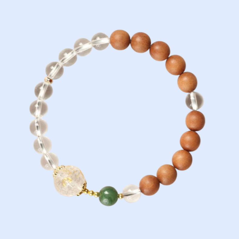 碧玉串珠白水晶木手串男女飾品禮物